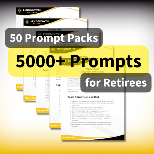 Don’t let the challenges of retirement hold you back. The Retiree Prompt Pack Library is your go-to resource for living smarter, healthier, and more empowered during your golden years.
